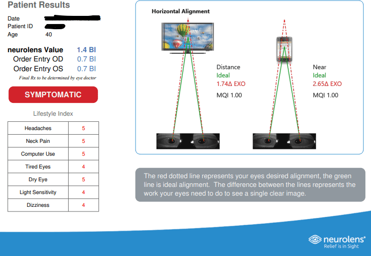 Now for the real life experience of this lens technology. I will start by saying I was very excited for what this lens could potentially due for patients. I had sat in on presentations where real world patients spoke to the dramatic improvement in their pain symptoms. Even moved to the point of tears of joy for their relief. While I have rather dramatic symptoms for all of the aspects Neurolens are designed to improve, I honestly didn’t necessarily expect it to make a major improvement for myself. I have a complex medical history, including multiple surgeries which have depleted my natural biome and caused significantly dry eyes, which in turn has made me incredibly light sensitive. Also, I lost all hearing in my left ear late in light which has contributed to neck pain. I assumed that the Neurolens would not be able to address these issues, since they are not about how my eyes see, but are from systemic health issues.